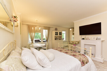 Lielisks dizains! Gaumīgi, skaisti, klusi un romantiski! Īstā vieta, kur baudīt romantiku. Tīrs, kopts un pārdomāts līdz pēdējam sīkumam, lai viesi justos komfortabli! Paldies….! Un saimnieku Ferrero Rocher un šampanietis Lieliski!